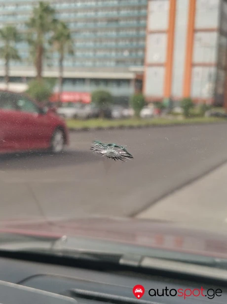 - Скол на лобовом в виде звёздочки (не расползается);