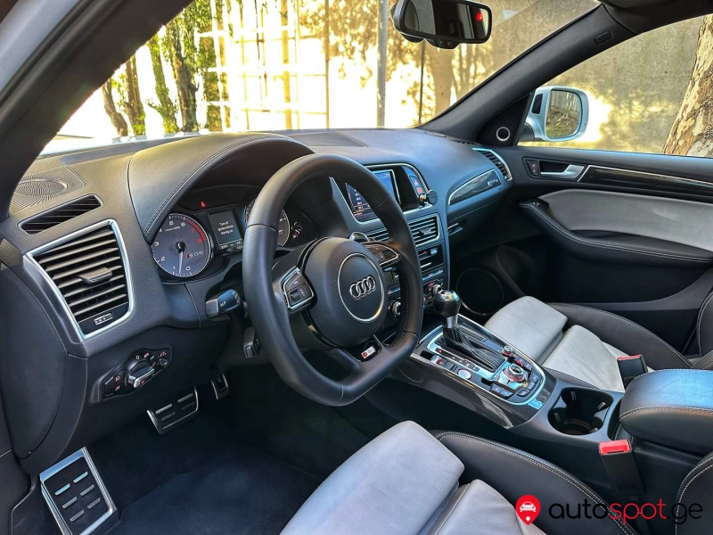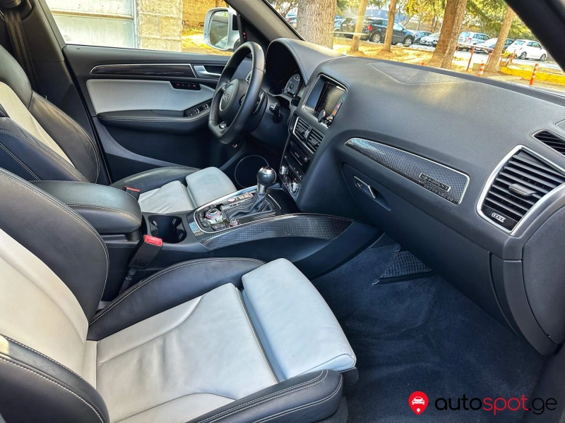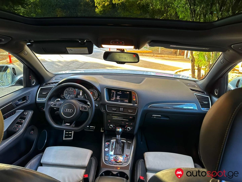 SQ5!!! მანქანა არის უიდეალურეს მდგომარეობაში!!მანქანას აქვს წინა უკანა ლედ ფარები,უკანა ხედვის კამერა,პარკინგ სესნორები,ორმაგი შუშები,კომფორტ სავარძლები,ორ ზონიანი კლიმატ კონტროლი,სავარძლების გათბობა,პანორამა,გასწრების სენსორები გვერდითა სარკეებში,უგასაღებოდ დაქოქვა ჩაკეტვა გაღების ფუნქცია, Bang & Olufsen აუდიო სისტემა,მულტი რული სიჩქარეების გადართვით,ნაპა ტყავში გადაკერილი ტორბეტო და კარის აბივკები,აუდიო და ტელეფონის ფლუთუზი, ოთხივე ახალი MICHELIN-ის საბურავები,სალონის მოპირკეთება კარბონით,ჩატარებული აქვს ყველა სერვისი შეცვლილი აქვს ფილტრები და ზეთები
